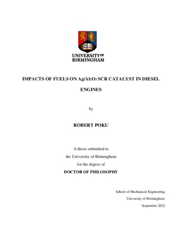 Poku, Robert (2023). Impacts of fuels on Ag/Al\(_{2}\)O\(_{3}\) SCR catalyst in diesel engines. University of Birmingham. Ph.D.