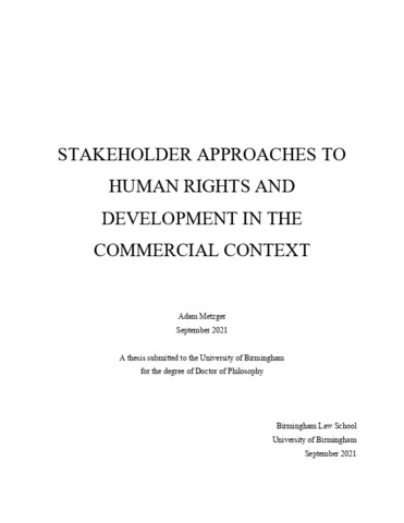 Metzger, Adam (2022). Stakeholder approaches to human rights and development in the commercial context. University of Birmingham. Ph.D.