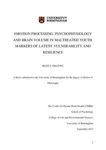 Diaconu, Bianca (2024). Emotion processing, psychophysiology and brain volume in maltreated youth. Markers of latent vulnerability and resilience. University of Birmingham. Ph.D.
