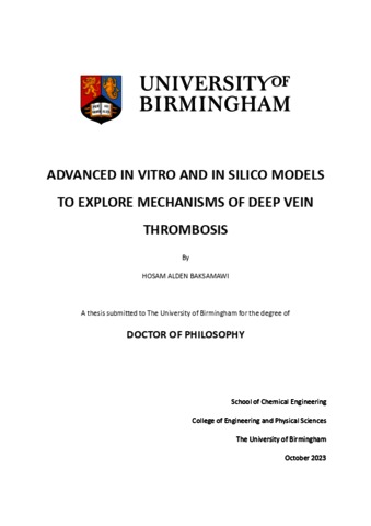 Baksamawi, Hosam Alden (2024). Advanced in vitro and in silico models to explore mechanisms of deep vein thrombosis. University of Birmingham. Ph.D.