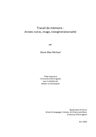 Michael, Diane Mae (2024). Travail de mémoire : Années noires, image, intergénérationnalité. University of Birmingham. Ph.D.