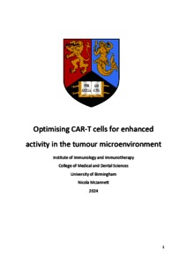 McJannett, Nicola Jane (2025). Optimising CAR-T cells for enhanced activity in the tumour microenvironment. University of Birmingham. Ph.D.