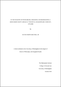 In the shadow of Peter Brook: designing and redesigning A Midsummer Night's Dream at the Royal Shakespeare Company, 1970-2000.